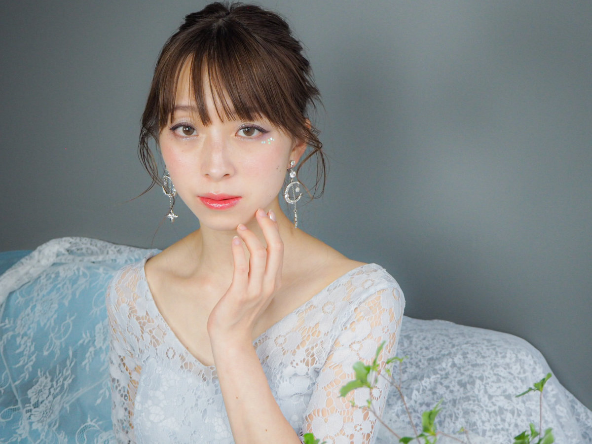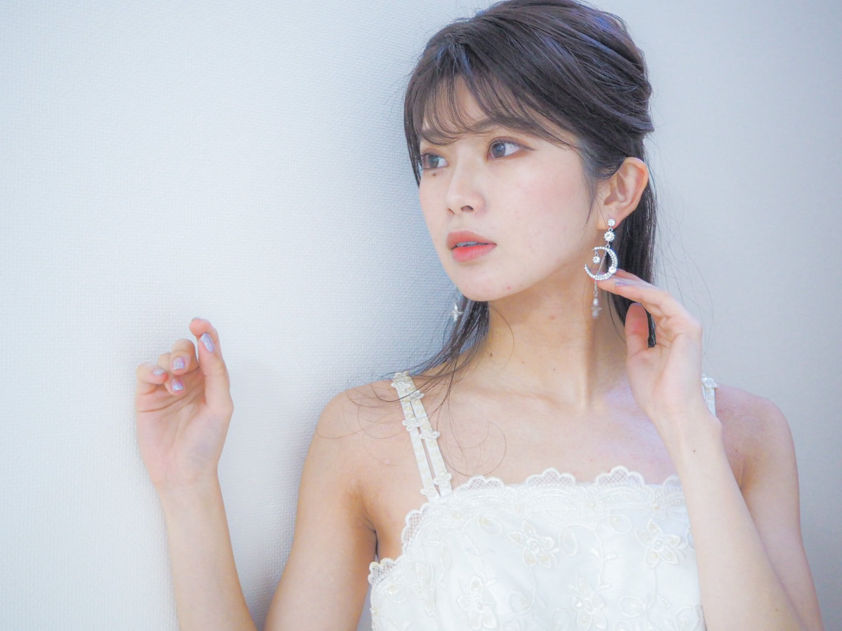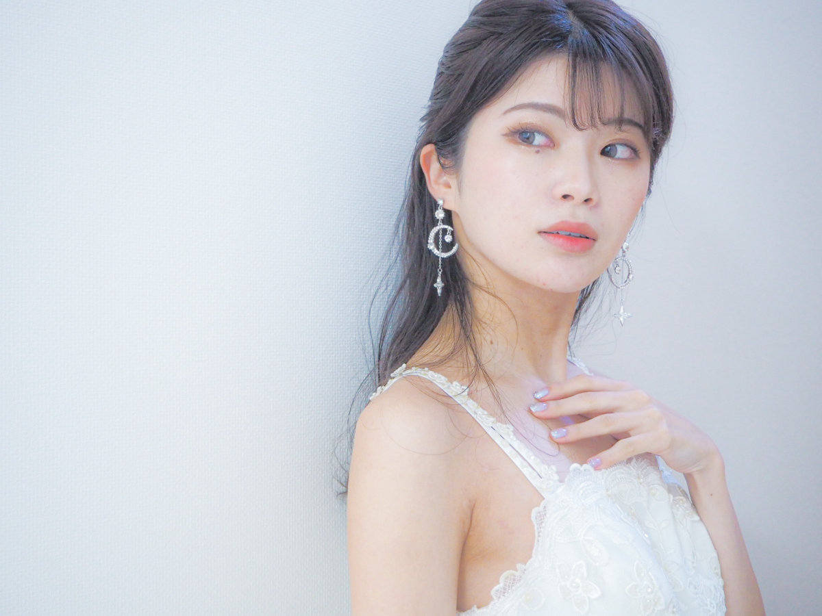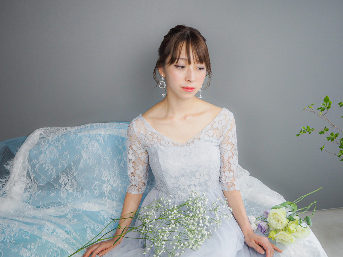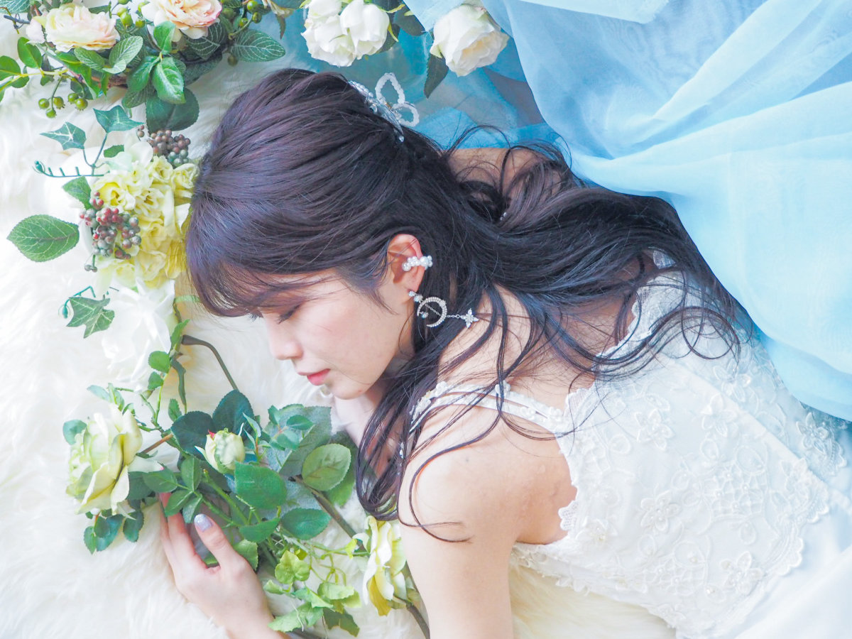 大小さまざまなビジューが散りばめられたデザインで豪華ながらもクリアのビジューとシルバーカラーで爽やかな印象となっています。