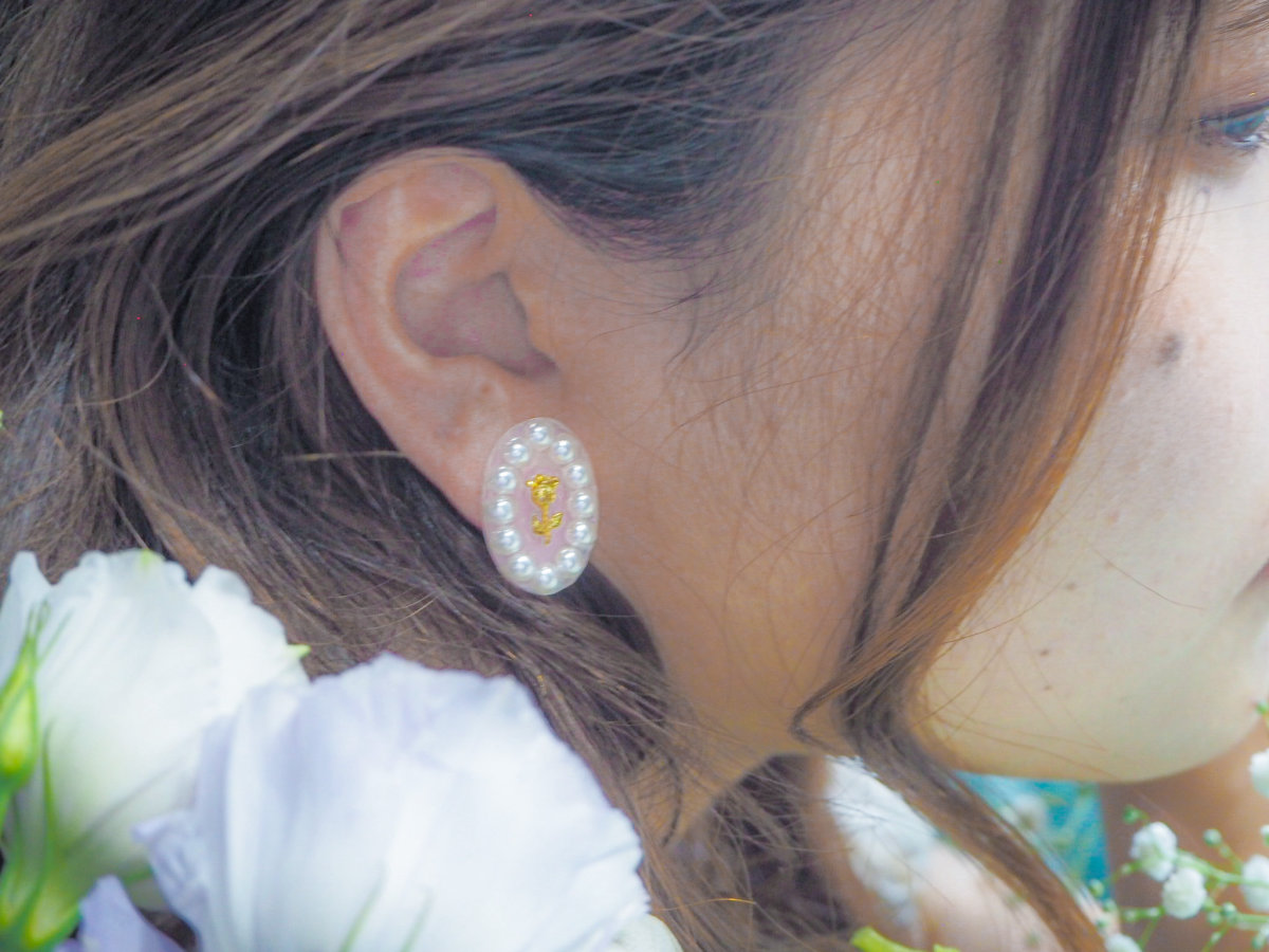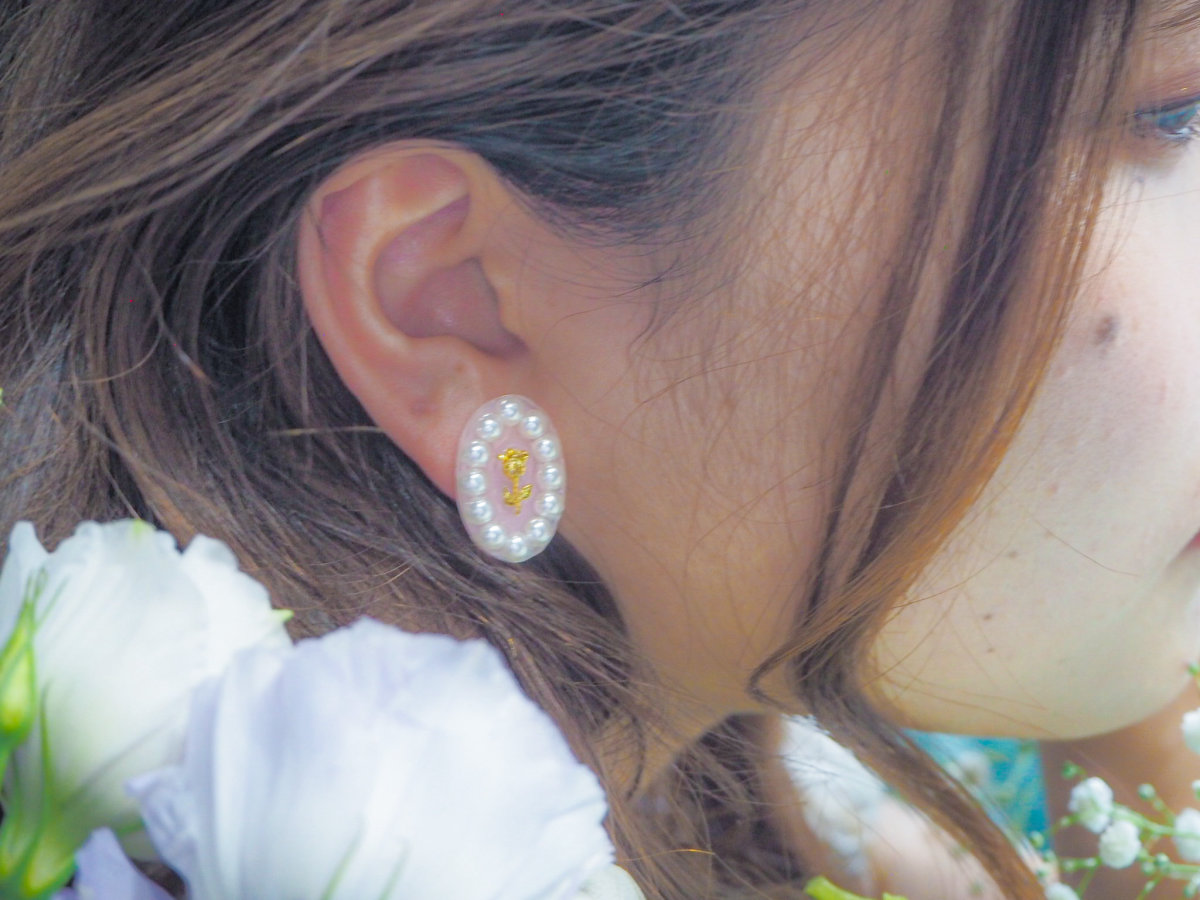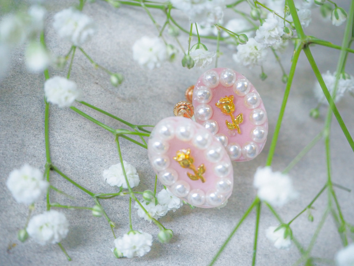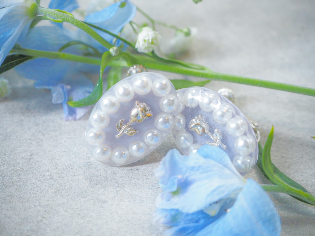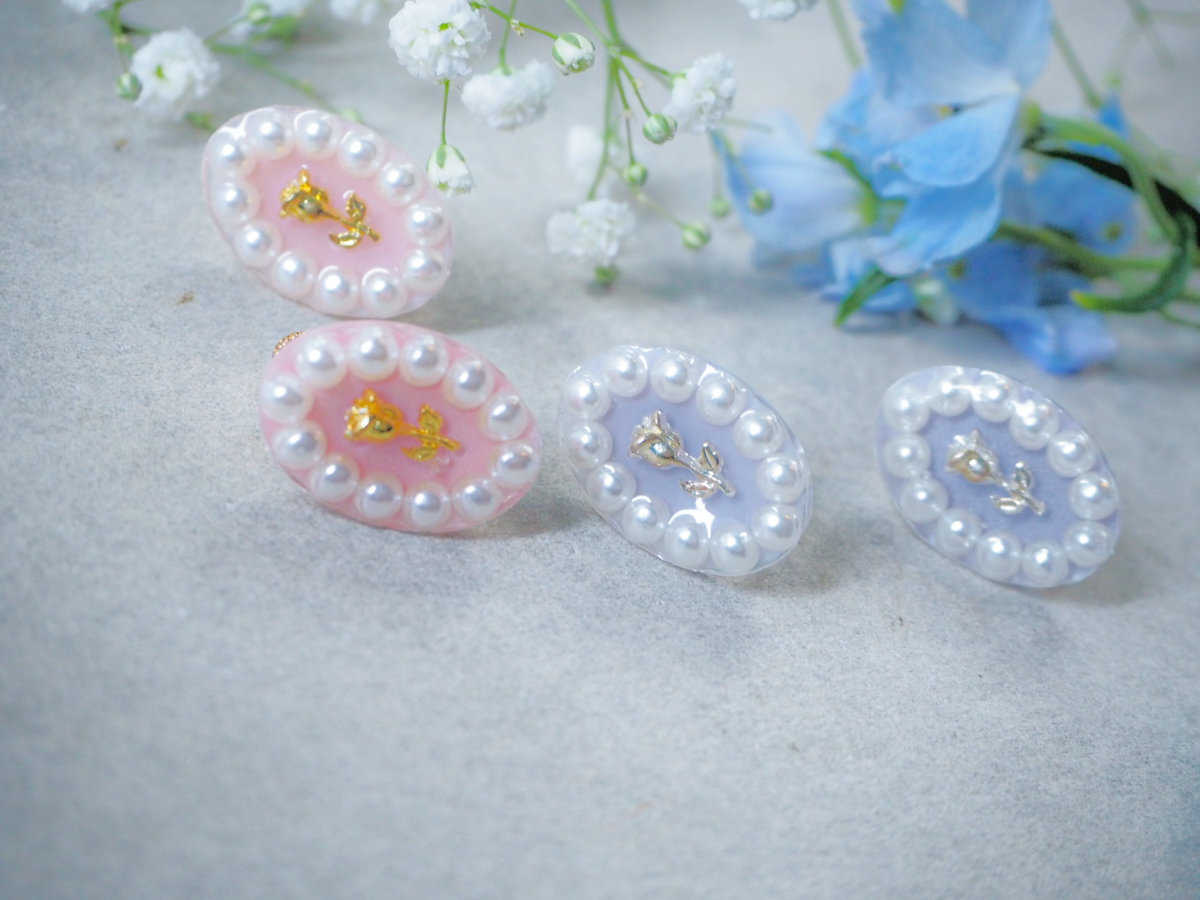 バラとパールの組み合わせが愛らしく耳元を彩ります。