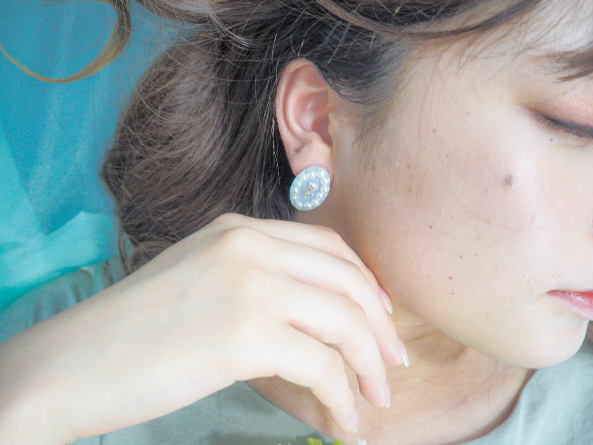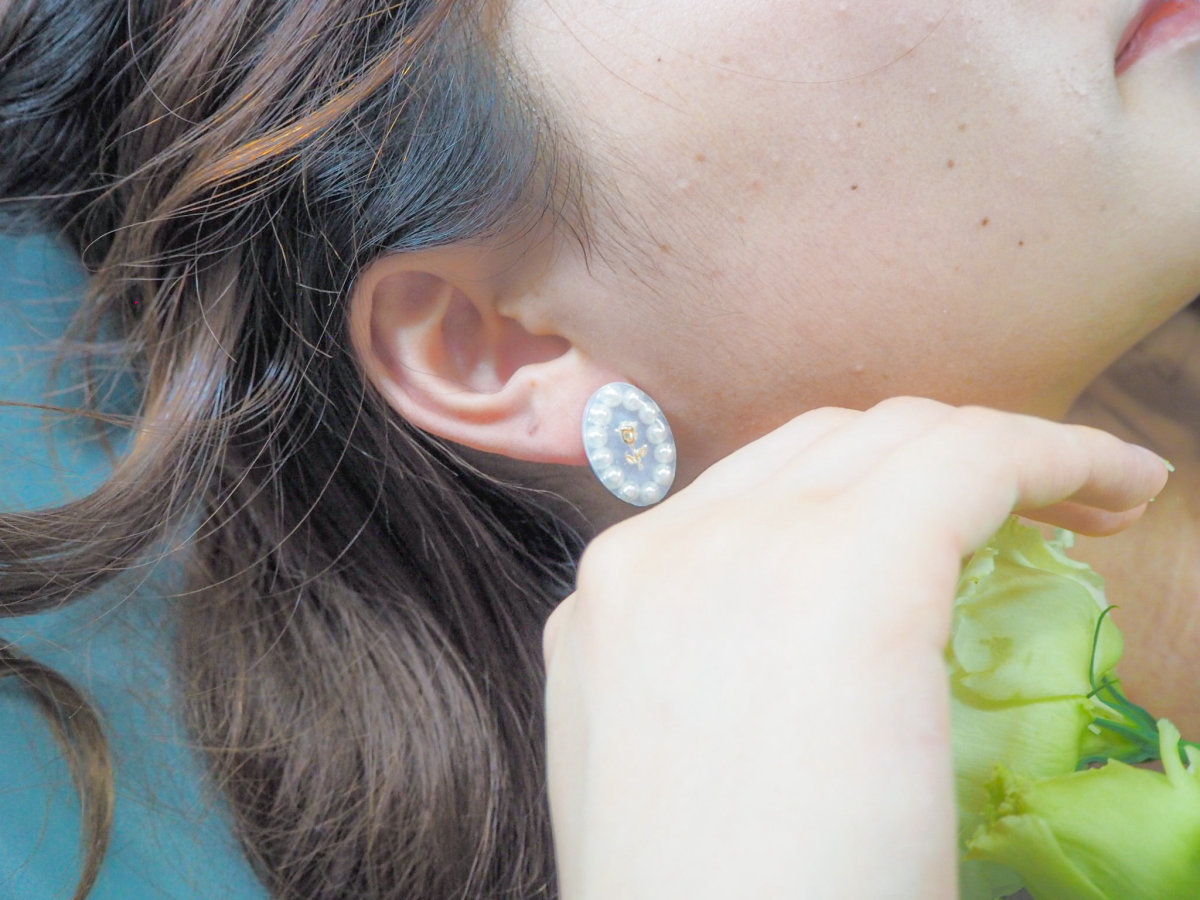 パールでぐるりと額縁のように囲んだイヤリング&ピアスです。