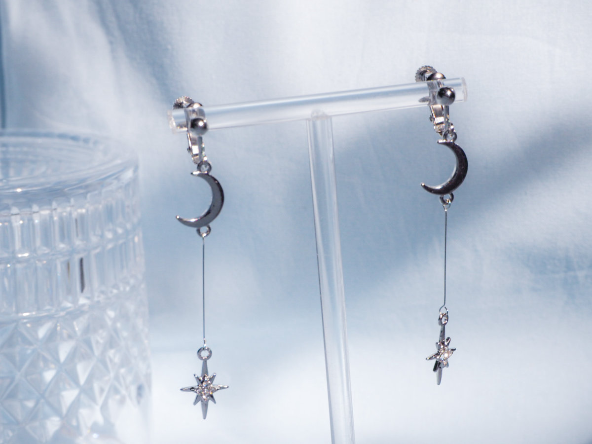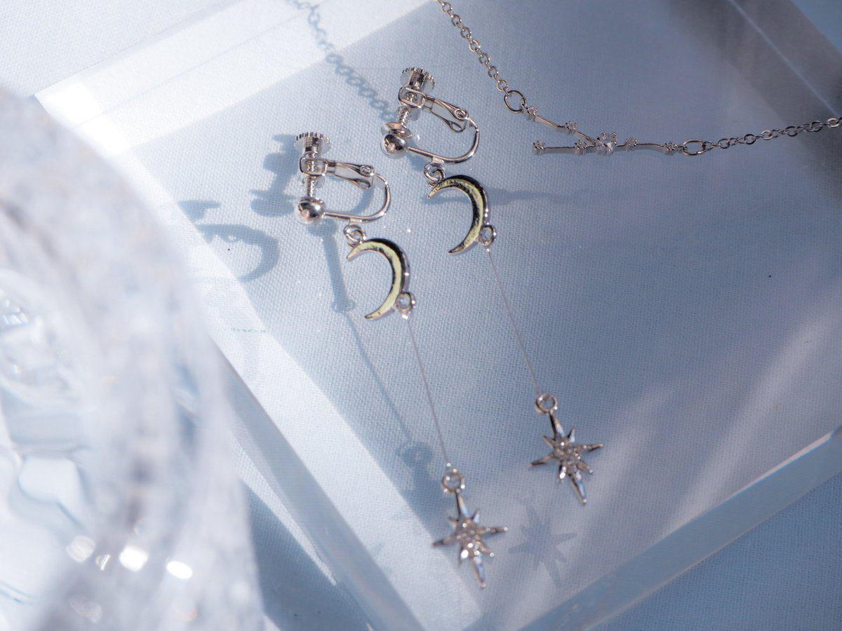 耳元で揺れる星のきらめきが、夜空に浮かぶ星々のように美しく、上品な華やかさを演出します。