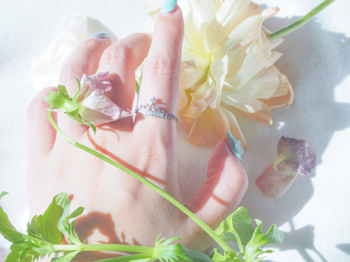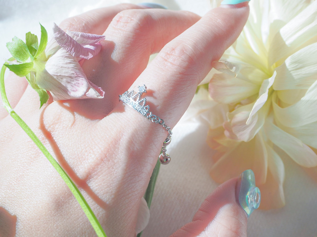 繊細な細工がほどこされ、小粒なクリスタルが並ぶ王冠にひときわ輝く一粒が目を引きます。